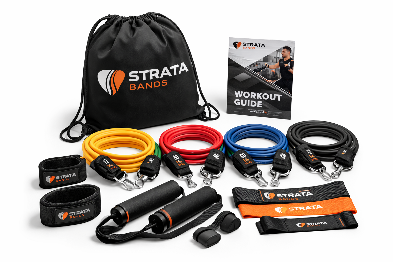 The Strata Pro Resistance Band Kit offers higher resistance options and premium accessories for more advanced training. Great for strength circuits, mobility work, and travel workouts.